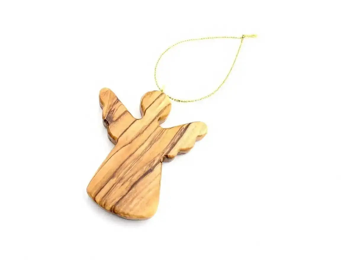 This beautiful hanging angel ornament is handmade from sustainably harvested, authentic Bethlehem olive wood. Featuring a shining star and a delicate manger scene, this ornament tells the timeless story of the Holy Family, symbolizing hope and peace for all.