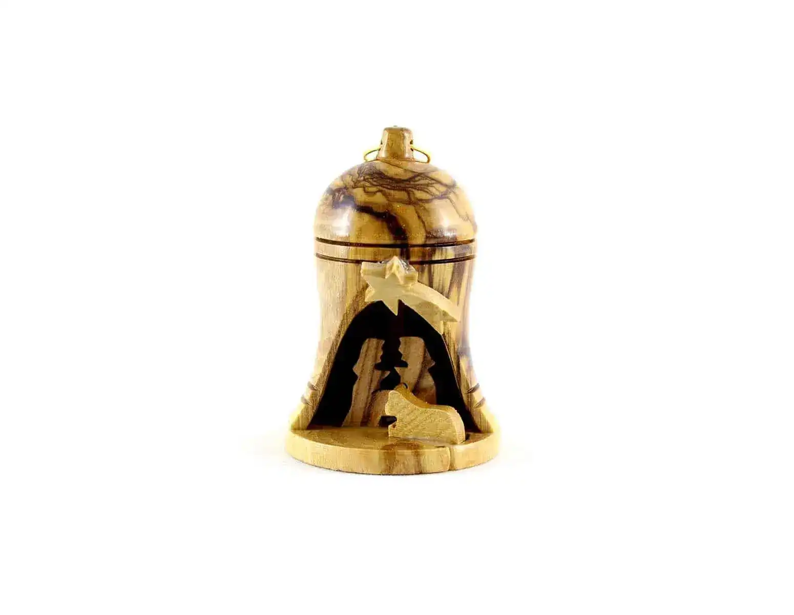 Hanging Olive Wood Bell Nativity Christmas Ornament #OR113