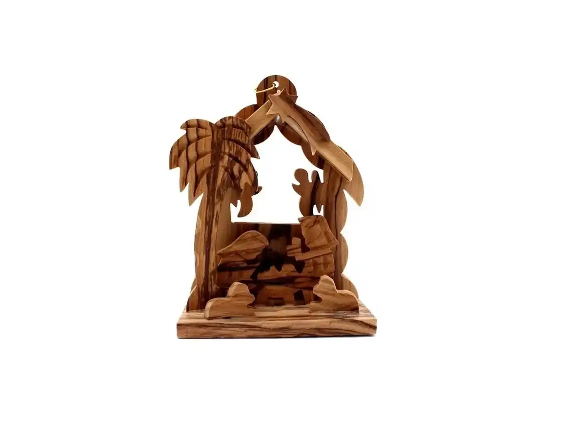 This beautiful Christmas ornament is handmade in the Holy Land from sustainably harvested, authentic Bethlehem Olivewood. In this ornament, with its shining star and manger scene, we see the eternal story of the Holy Family – a story of hope for all people.