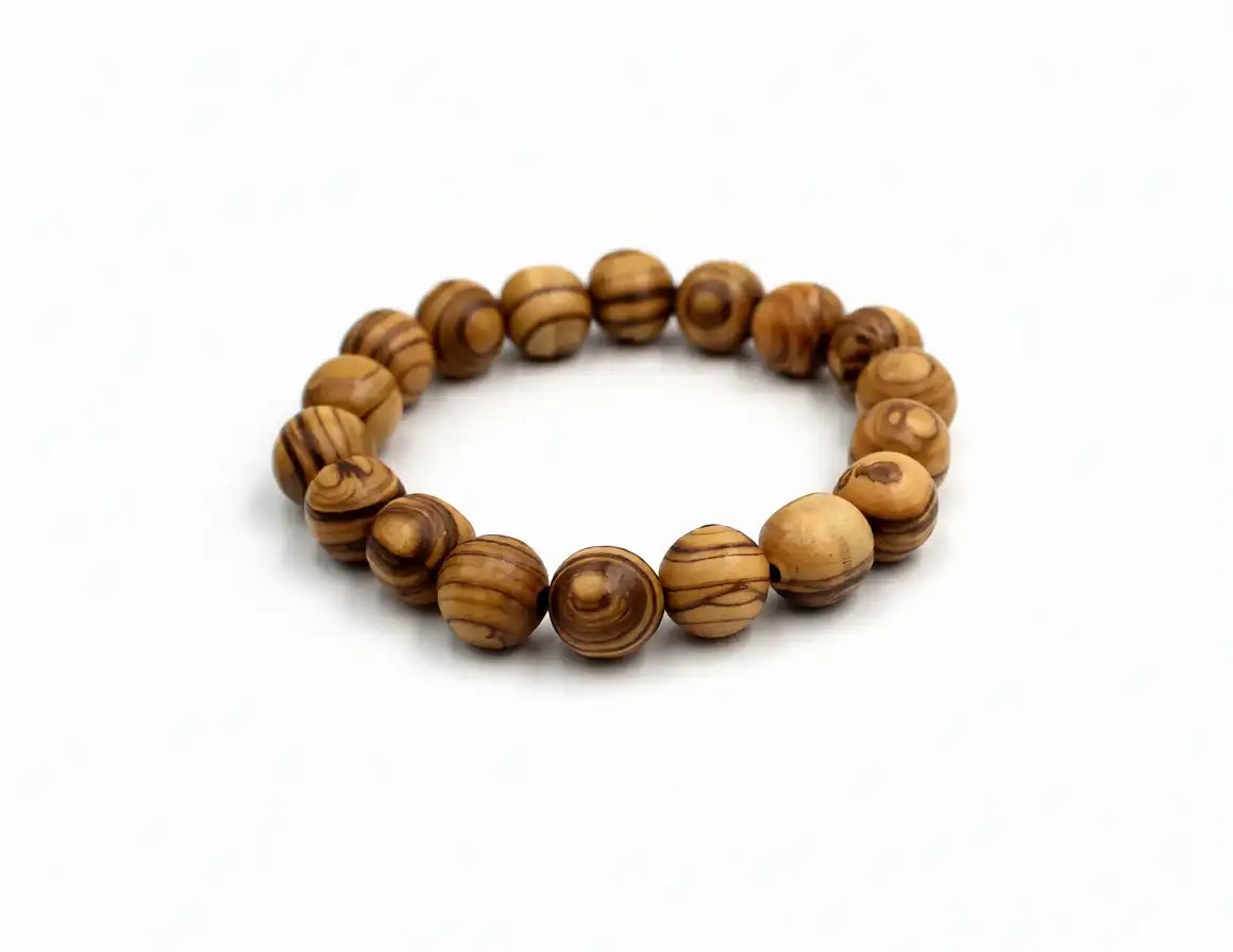 Each olive wood bead measures approximately 12 mm (0.5”) in size.