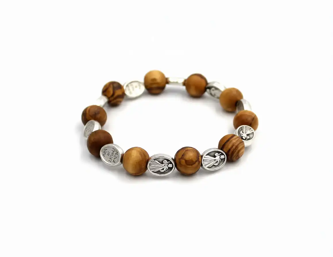This beautifully made rosary bracelet is handmade in the Holy Land from sustainably harvested, authentic Bethlehem Olivewood. It’s elastic and easily fits on any wrist..