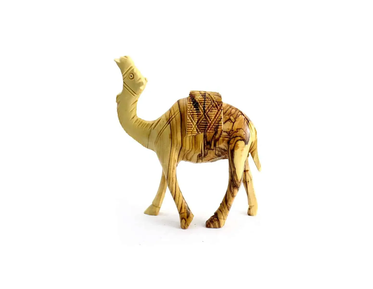 This beautiful walking camel with a wooden blanket is handmade in the Holy Land from sustainably harvested, authentic Bethlehem Olivewood.