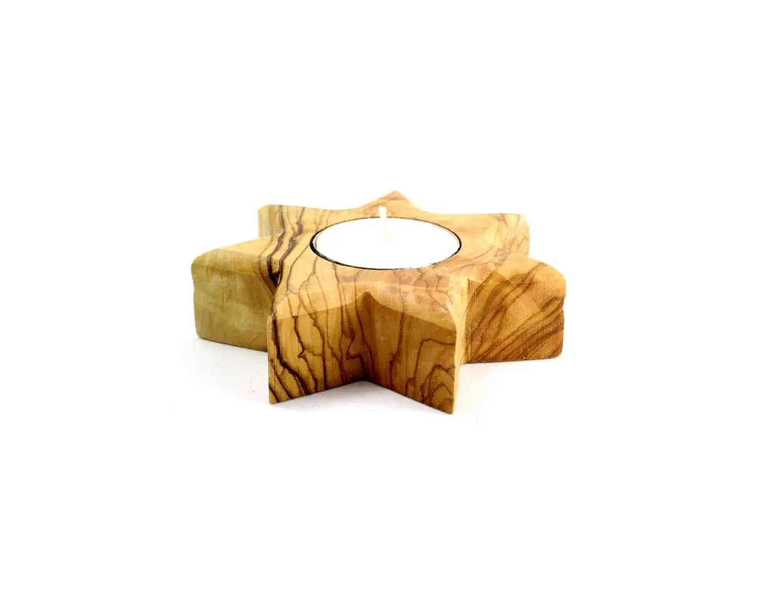 This beautiful Star of Bethlehem candle holder is handmade in the Holy Land from sustainably harvested, authentic Bethlehem Olivewood. The wood is deeply stained, leaving a warm soft glow. The candle holder is smooth and silky to the touch. It comes with a regular tea light candle. Please note that no two olive wood products are identical, due to differences in wood tone and grain.