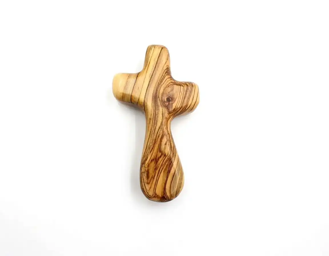This exquisite, unique Olive Wood Cross for Comfort is made from olive wood from Bethlehem therefore each cross is unique in appearance. It is made to be held in one’s hand for comfort during difficult times and when one needs to be reminded of God’s love for us. Being made from wood from the olive tree each cross is unique.