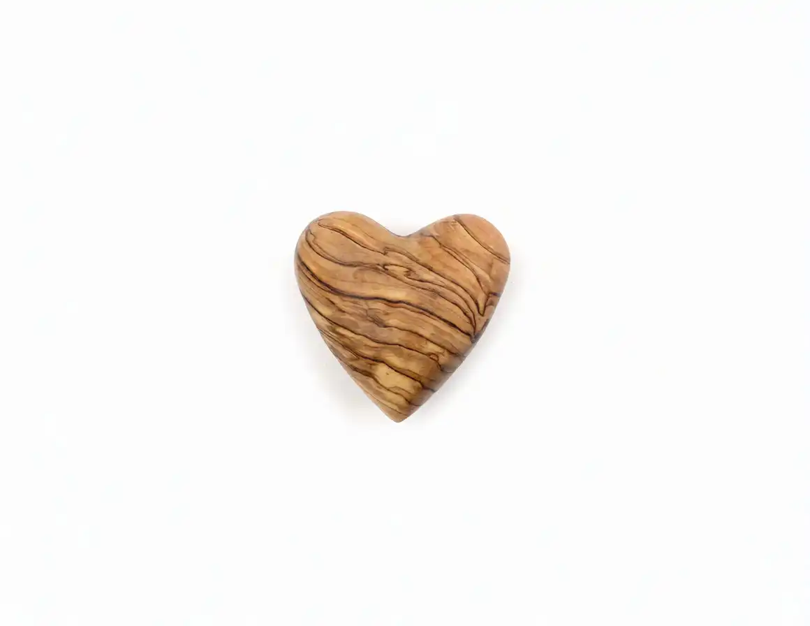 Hand-carved from genuine Bethlehem olive wood, this heart showcases the natural beauty and warmth of the Holy Land’s ancient trees. Each piece is polished to a smooth, comforting touch, symbolizing love, peace, and faith. Perfect as a small keepsake, display piece, or meaningful gift.
