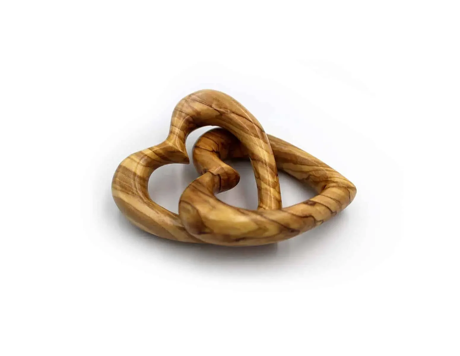 These intertwined hearts are hand carved in the Holy Land from sustainably harvested, authentic Bethlehem Olivewood. The grain of the wood gives a stunning contrast and is stained to give a warm soft glow and a smooth, elegant finish. Made from the finest olive wood, this would make a loving gift for any couple.