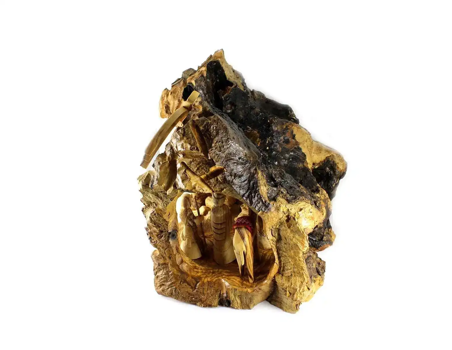 This Nativity Stable can vary in size shape, and appearance due to the diverse patterns found in the olive wood grain and the fact that it is handmade, so each piece is unique.