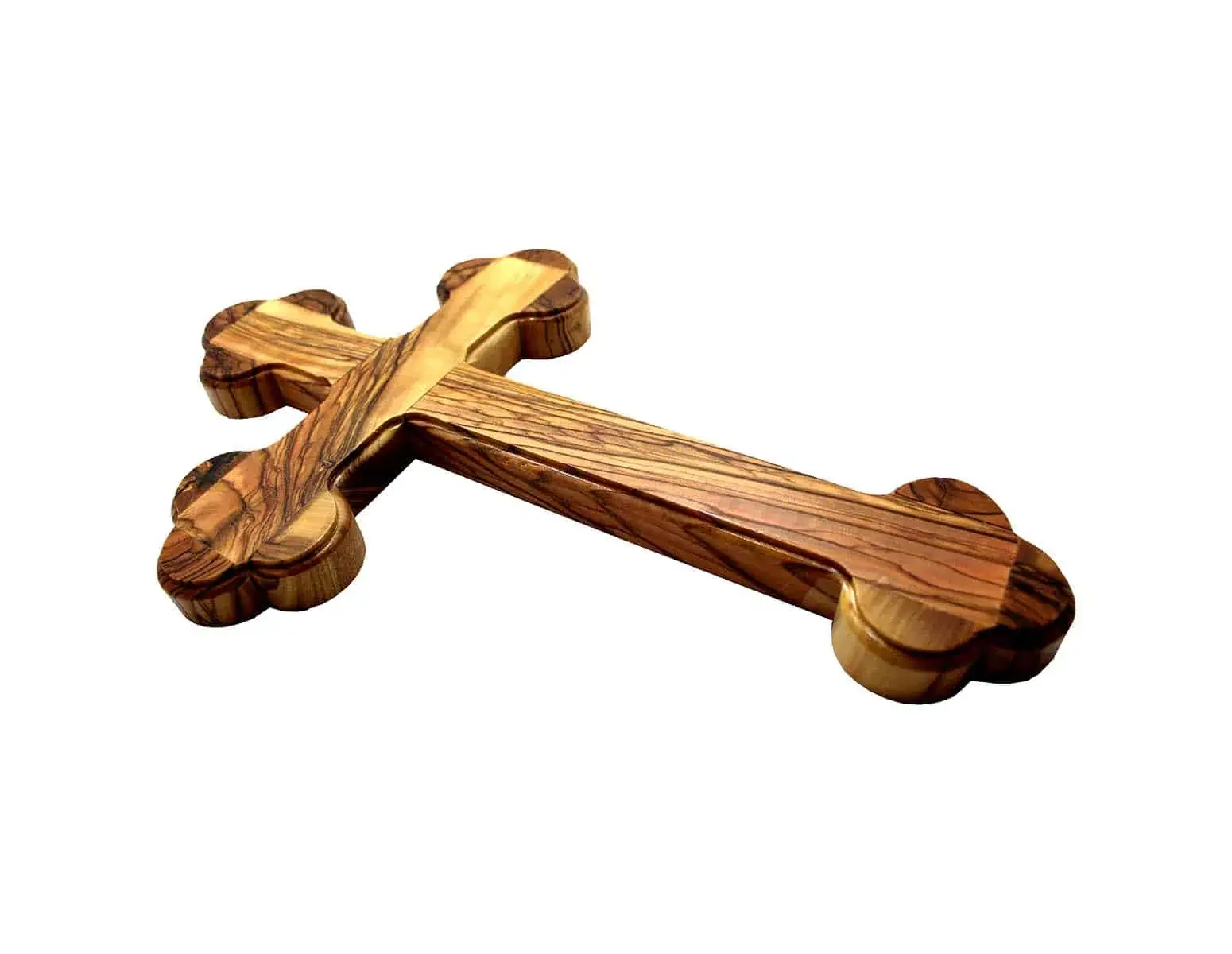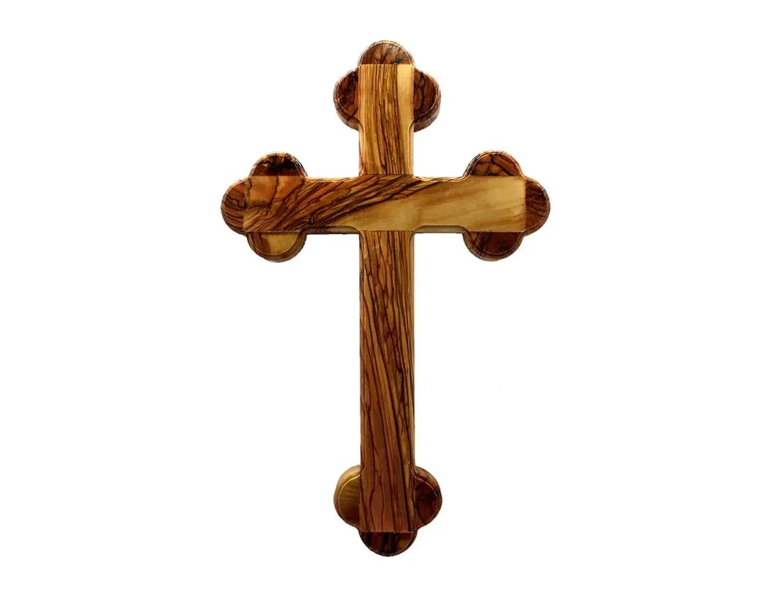 This traditional, purist Orthodox Cross is handmade in the Holy Land from sustainably harvested, authentic Bethlehem Olivewood.